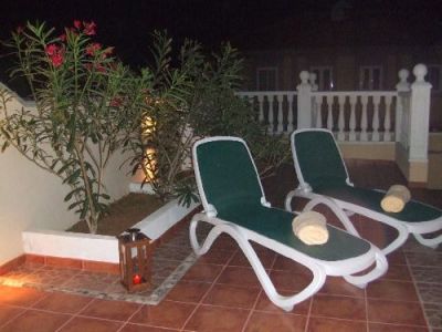 - Neben dem Naturschutzgebiet von La Pelada, befindet sich der Bungalow in einer ruhigen Anlage mit Gemeinschaftspool. Der Bungalow Alicia besteht aus 2 Stockwerken. Im unteren Stock befindet sich eine vollausgestatte Küche mit Ceranfeld, Ofen, Kühlschrank und Geschirrspüler. Die Küche ist offen und hat eine integrierte Bar, die mit dem Wohnzimmer verbunden ist. Fernseher mit Deutschem Sateliten TV ist vorhanden. Anschließend gibt es eine große Terrasse von ca. 45qm mit direktem Zugang zum Gemeinschaftspool. Im oberen Stock gibt es 3 Schlafzimmer, 2 Badezimmer und eine Terrasse von ca. 7 qm. Das 1.Schlafzimmer verfügt über ein Doppelbett, das 2. Schlafzimmer hat zwei Einzelbetten und im 3. Schlafzimmer befindet sich ein Einzelbett mit einem integrierten ausziehbaren Bett. Die beiden Bäder sind auch komplett ausgestattet und nett eingerichtet. Parkplatz für 1 Auto, eine eigene Waschküche mit Waschmaschine.