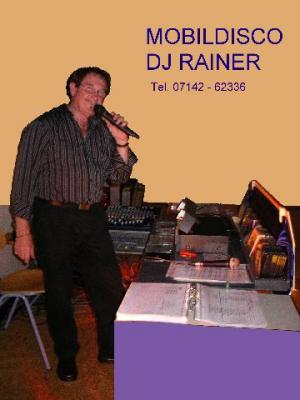 - MOBILDISCO DJ-RAINER. Der Spezialist für jedes Fest. Party - Tanz - Unterhaltung - Stimmung. Die Mobildisco für alle Festlichkeiten. Langjährige Bühnenerfahrung durch 100te Veranstaltungen, als DJ und Tanzmusiker. Musik ab den 50er Jahren bis hin zu den neuesten Hits. Alle Stilrichtungen der Disco und Tanzmusik. Die größten Hits der letzten 60 Jahre! Auf Musikwünsche wird stets eingegangen. Professionelle Ton und Lichtanlage mit Funkmikrofon das für Sie und Ihre Gäste zur Verfügung steht. Moderation. Dem Publikum angepasste Lautstärke. Für alle Altersgruppen die richtige Musik. Die musikalische Lösung für Ihr Fest. REFERENZEN: Geben Sie bei Google „showsternchen2“ ein und dann gehen Sie auf die Seite von „MyHammer“ und dort finden Sie Bewertungen die ich bei Veranstaltungen als DJ erhalten habe. Die Bewertung „Na ja“ war bei einer Punker-Hochzeit, das mir aber im Vorfeld nicht mitgeteilt wurde. Tel. 07142-62336 E-Mail: ra.gerhardt@gmx.de