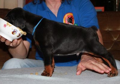 - FCI Dobermann Zwinger MIRATIO freut sich bekanntzugeben, dass am 05.03.2011 - 7 gesunde, wunderschone und kräftige Welpen (3 schwarze Hündinnen & 4 schwarze Rüden) nach: Interchampion Tahi-Reme ZEBULON ( Interchampion, PL Champion, PL Winner, PL Junior Winner, PL Junior Champion, LT Junior Club Winner, ZTP-V1A, IPO-2, HD-1 ) und Champion AXA Miratio ( PL Champion, PL Breeding Test - V1A , IPO-1, HD-1 ) geboren sind. Dieses sind Hunde aus den besten Blutlinien. Wir erwarten hervorragende Ausstellungs- und Sporterfolge und wissen auch, dass die kommenden Welpen wunderbare Familienhunde sein werden. Alle Welpen erhalten den FCI Export-Stammbaum, sie sind geimpft und entwurmt. Nach Wunsch auch kupierte Ohre. Mehr Info über unsere Hunde und Kennel auf unserer Homepage zu finden!!! Tel. +48 609 059 006