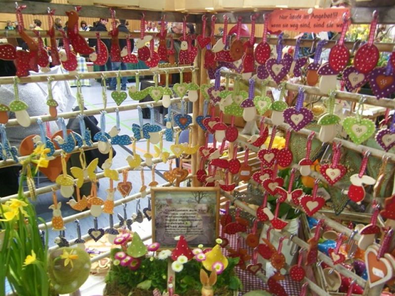 - Freuen Sie sich auf einen Markt der ganz besonderen Art. In niveauvoller Atmosphäre werden Kunstwerke aus allen nur erdenklichen Materialien (wie Holz, Glas, Stoff..) ausgestellt und verkauft. Aber auch liebevolle Teddybären und Puppen, hausgemachte Marmelade und Likör, Dekorationen für jede Jahreszeit, Floristikarbeiten für jeden Geschmack, Deko und Geschenke für jeden Geldbeutel und noch vieles mehr gilt es zu „erleben. Die über die Landkreisgrenze hinaus bekannten hausgemachten Kuchen und Torten sollten Sie nicht versäumen.. Natürlich gibt es auch andere Leckereien. Verschiedene Aktionen sorgen immer wieder für Abwechslung. Egal ob Showbühne, kostenloses Kinderbasteln, Deko-Gestaltung für Erwachsene, Holzmalen für Kinder, Tombola, Fotoaktionen u. v. m. Lassen Sie sich einfach überraschen und begeistern! Freuen Sie sich auf einen kreativen Sonntag voller neuer Ideen und Geschenke.