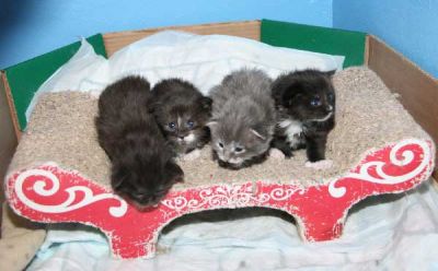 - Wir sind vier süsse Mainecoonbabies, 3 Mädels in black/white mit Daumen (Polydaktyl) und ein Katerchen in blue-tabby. Wir sind jetzt über 2 Wochen alt und suchen im Mai neue Kuschelplätze, wir sind dann entwurmt, geimpft und haben natürlich ein Gesundheitszeugnis und einen Stammbaum. Nähere Infos unter 0650/88 666 88