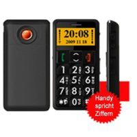- Das erste sprechende Großtastenhandy! Das Handy spricht eingegebene Zahlen nach Druck auf die jeweilige Ziffer und besticht durch einfachste Handhabung aufgrund großer beleuchteter Tasten. Hauptmerkmale: - Das Handy spricht eingegebene Zahlen nach Druck auf die jeweilige Ziffer - einfachste Handhabung durch große beleuchtete Tasten - SOS Funktion (Nach Druck auf SOS Knopf ertönt ein schrilles Signal zur Signalisierung der Hilfebedürftigkeit für Personen in der Nähe. Im Hintergrund wird an bis zu 4 voreingestellte Rufnummern eine SMS Nachricht mit einem vorher beliebig gewähltem Text versendet und die Rufnummern werden nacheinander angewählt) - Freisprechfunktion mit einem Tastendruck - 8 Kurzwahl- und 2 Direktwahltasten - Seitliche Schieber für Tastensperre, Taschenlampe, Lautstärke und Radio