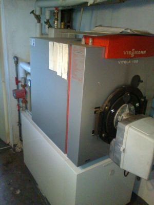 - Verkauf für 500Euro eine gebrauchte aber voll funktionsfähige und komplette Viessmann Vitola 100 Ölheizung nach EN303. Dazu noch Brenner, Tanks, Pumpen, Ausdehnungsgefäß, Verrohrungen und Heizkörper - was halt da ist und was der Käufer brauchen kann. Letzten Winter wurde die Heizung noch benötigt und ist gut gelaufen. Da das freistehende Einfamilienhaus ( ca 120mq ) aber demnächst abgerissen wird, trenne ich mich nun davon. Die Heizung ist noch montiert. Da der Wasser und Stromanschluß bereits abgemeldet wurde, ist sie bereits ausser Betrieb genommen. Beschreibung der Heizung: . Viessmann Vitola 100 Ölheizung nach EN303 Nennwärmeleistung 18KW Kesselwassermenge 70L Beschreibung des Brenners: . Brenner ELCO KLÖCKNER Vectron Type EK01.3 L-H Beschreibung der Öltanks: Heizöltanks 6000Liter - drei Stück a 2000Liter mit Verrohrung. Alles weitere siehe Bilder ( da sind auch die Typenschilder der Heizung und der Tanks ) Das Alter der Heizung weis ich nicht, da ich nicht selbst in dem Haus